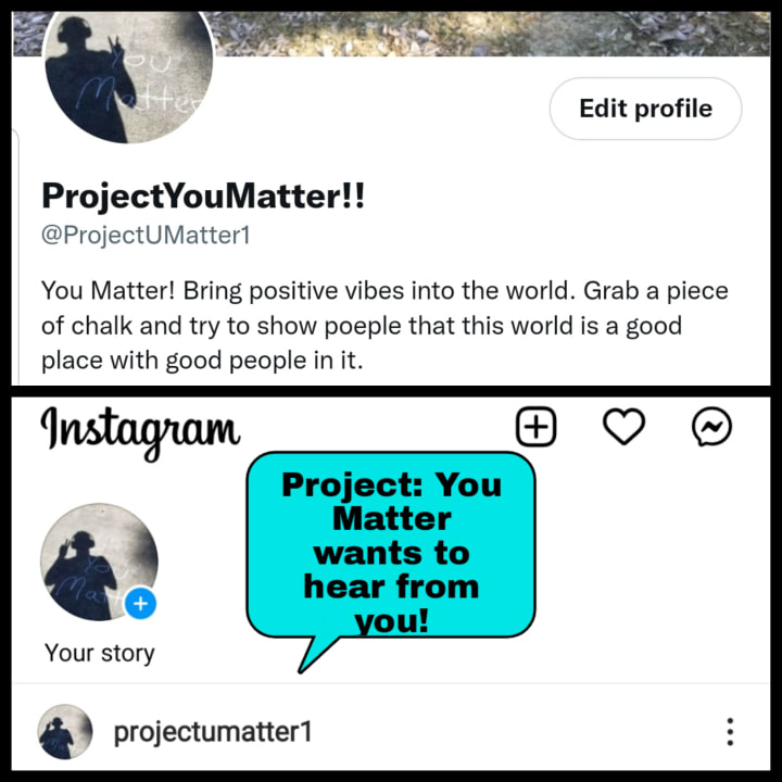 If you decided to get your chalk and make a difference, please take a picture and post on the twitter page (or Instagram) @projectumatter1 or if you have something you would like to say to others who need to hear it feel free to post it there.