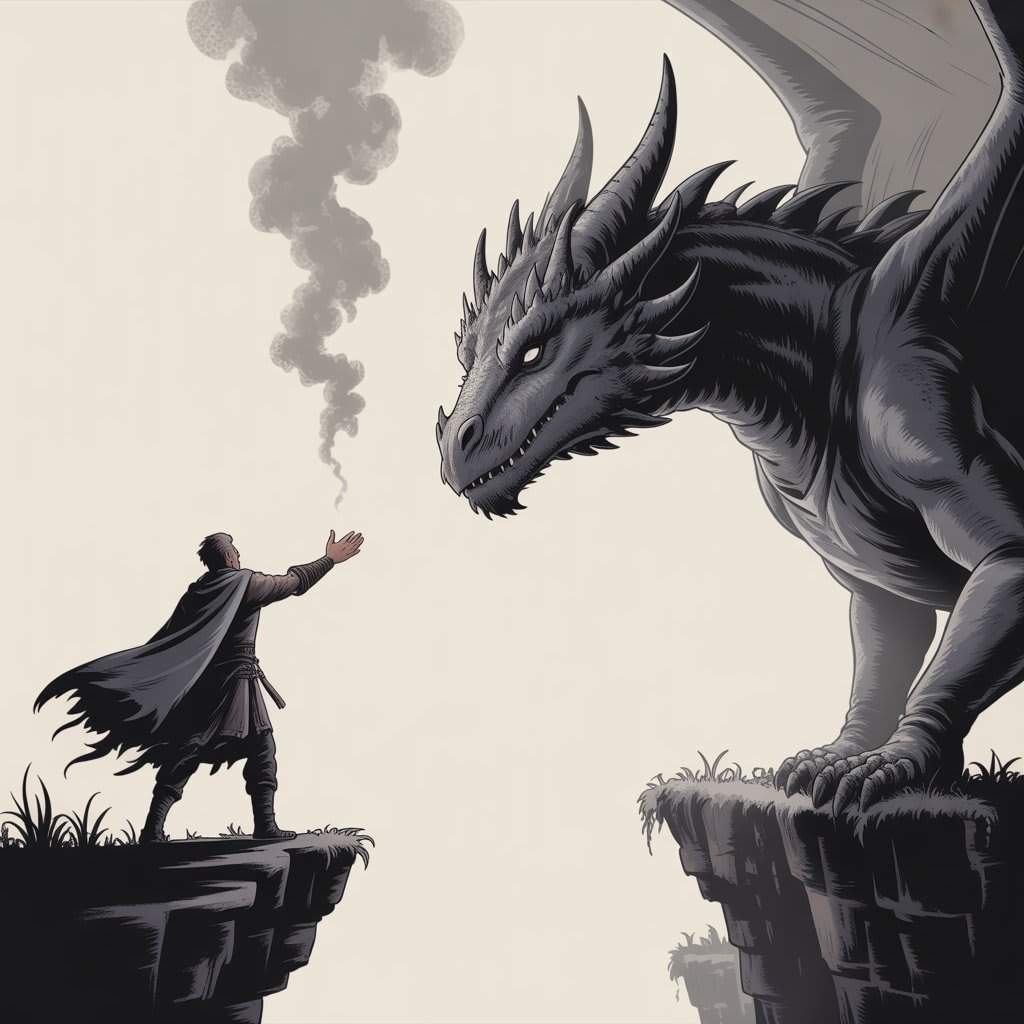 The dragon chuckled, a sound like boulders tumbling through fire. “Another fool seeking to bargain with flame? Speak then, ashborn.”