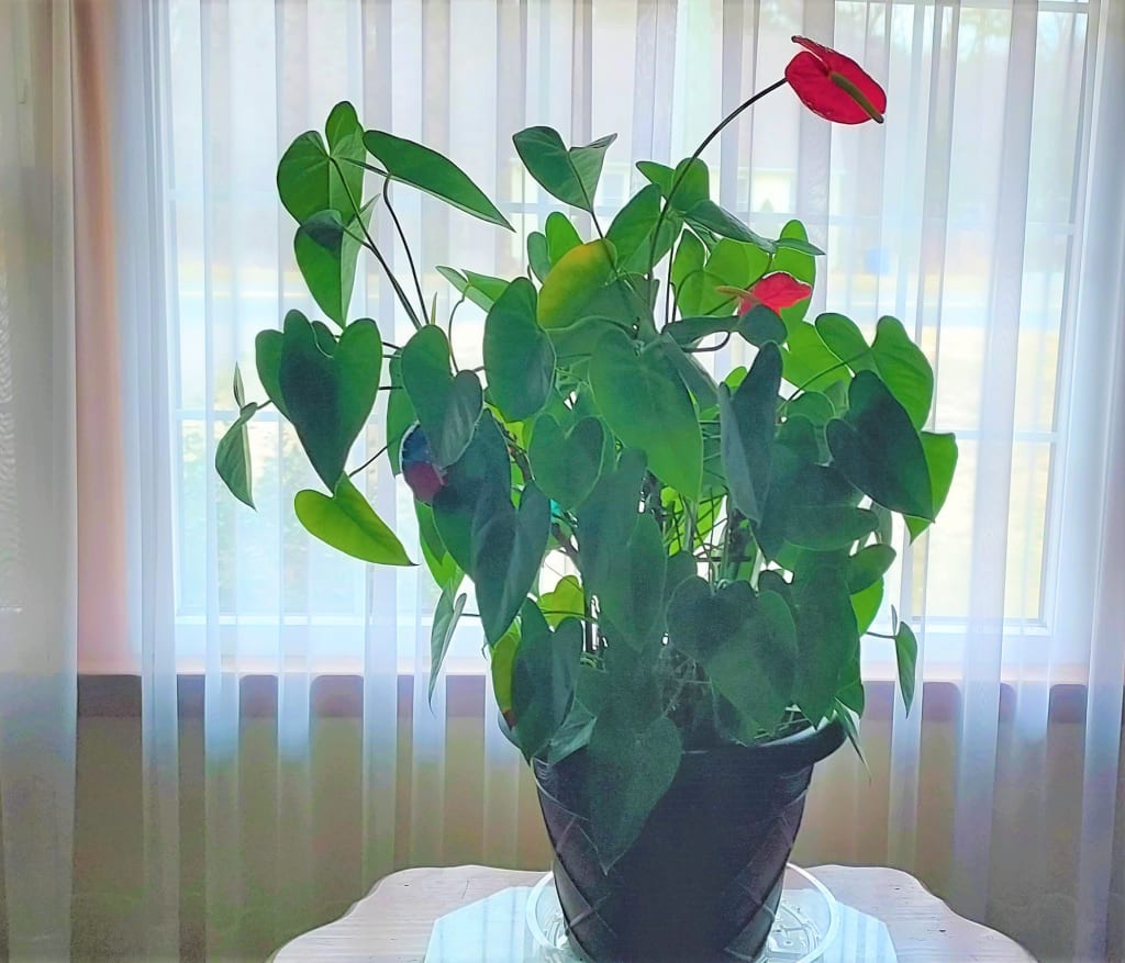 “Hi, Mom,” she greeted Sonra, hugged her, walked to the bay window near the sofa, and turned the large green flowerpot, with Red Laceleaf Anthurium flowers on the small table in the center, to the right.