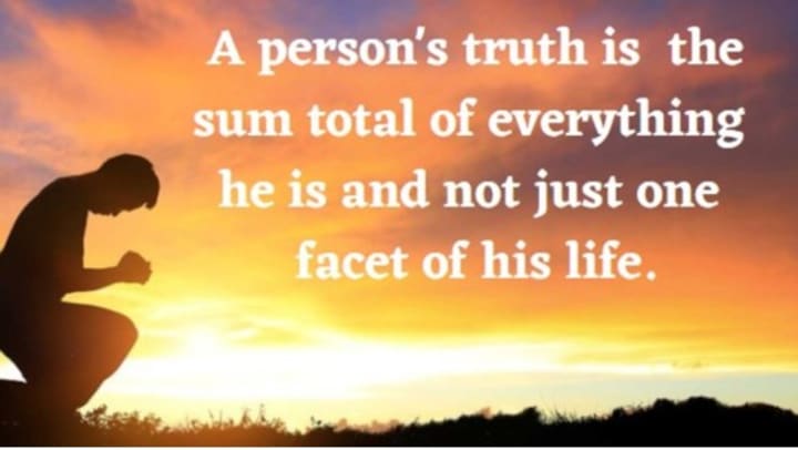 A person's truth is actually the sum total of everything he is, and not just one facet of his life. It is that which is cemented into his inner being.