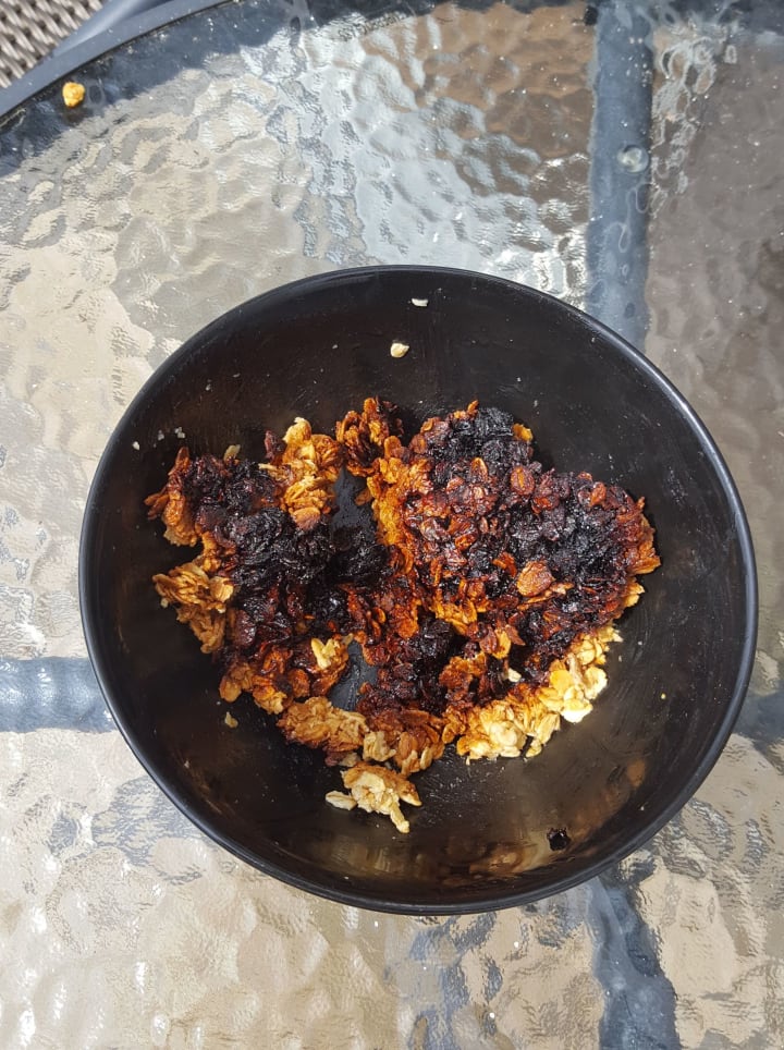 The first big f**k up happened a few weeks into lockdown, I'd been lulled into a false sense of security and I was starting to think I couldn't make any drastic mistakes. Idiot. One evening I had some knarly cravings for flap jacks. I had most of the ingredients in my cupboard but I as don't have an oven I thought I'd give it a go in the microwave - what could go wrong?! I stood mixing the oats, butter and honey together, basking in the genius of my plan, a Cheshire grin across my face. As I waited for the microwave to work it's magic I stood on my balcony and took in the wonderful view. The peace did not last long.