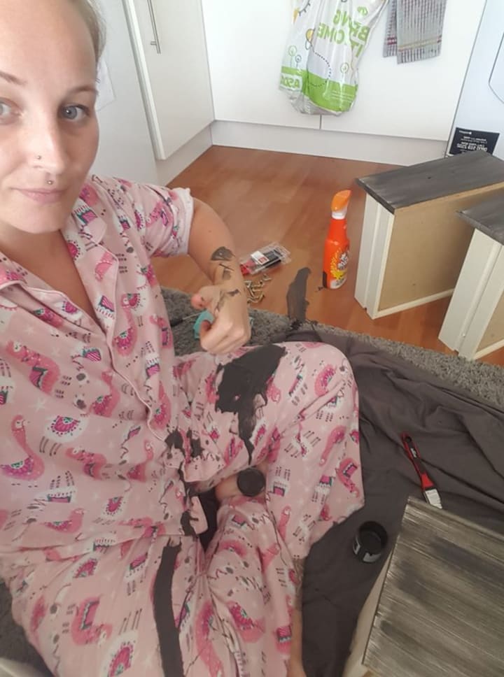 In the cold light of the next morning the full extent of my blunder was clear. It wasn't just the kitchen floor that got a coating, basically any uncovered surface in my flat now had a fine layer of black paint. This included my laptop, the hobs, my glasses, mirrors, family pictures, the TV... f**king everything. Operation clean up is still going a full week later. The drawers actually turned out okay in the end though, so there is a very small silver lining!