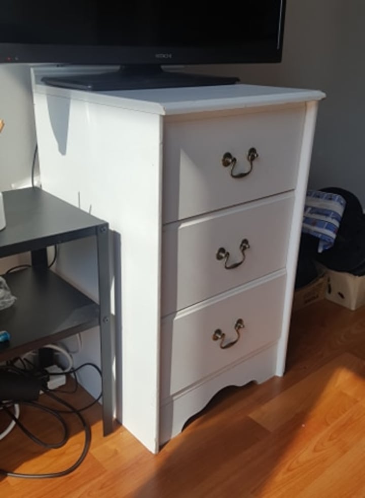 The next two snafus came in quick succession after the fire. Deciding cooking wasn't going to be my new hobby I quickly moved onto a creative endeavour. I'd recently bought a bedside table from Gumtree, it was fit for purpose but not exactly the most aesthetically pleasing piece of furniture. I bought some cheap paint and brushes and quickly got to work on what I was sure was going to be a master piece. The first coat went well but trouble was lurking just a day away.