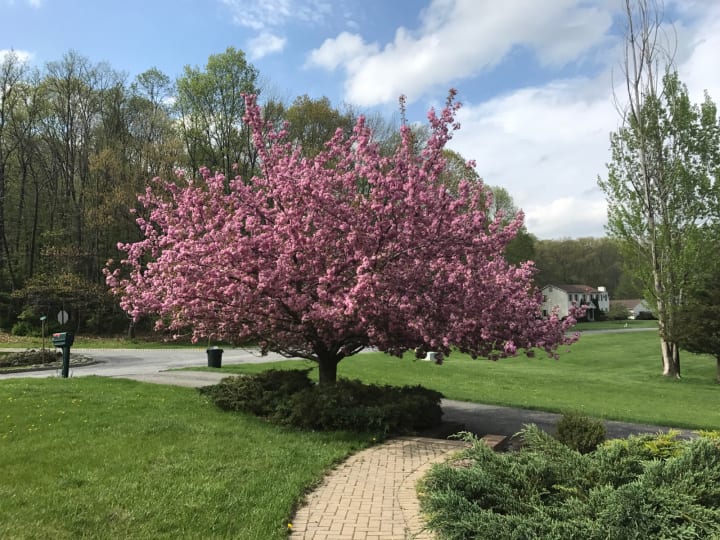 The abundance of nature out here makes for a view outside my window that looks like it could be a painting, with all the trees, lush green, and animals roaming around. But my favorite part of it all is our cherry blossom trees.