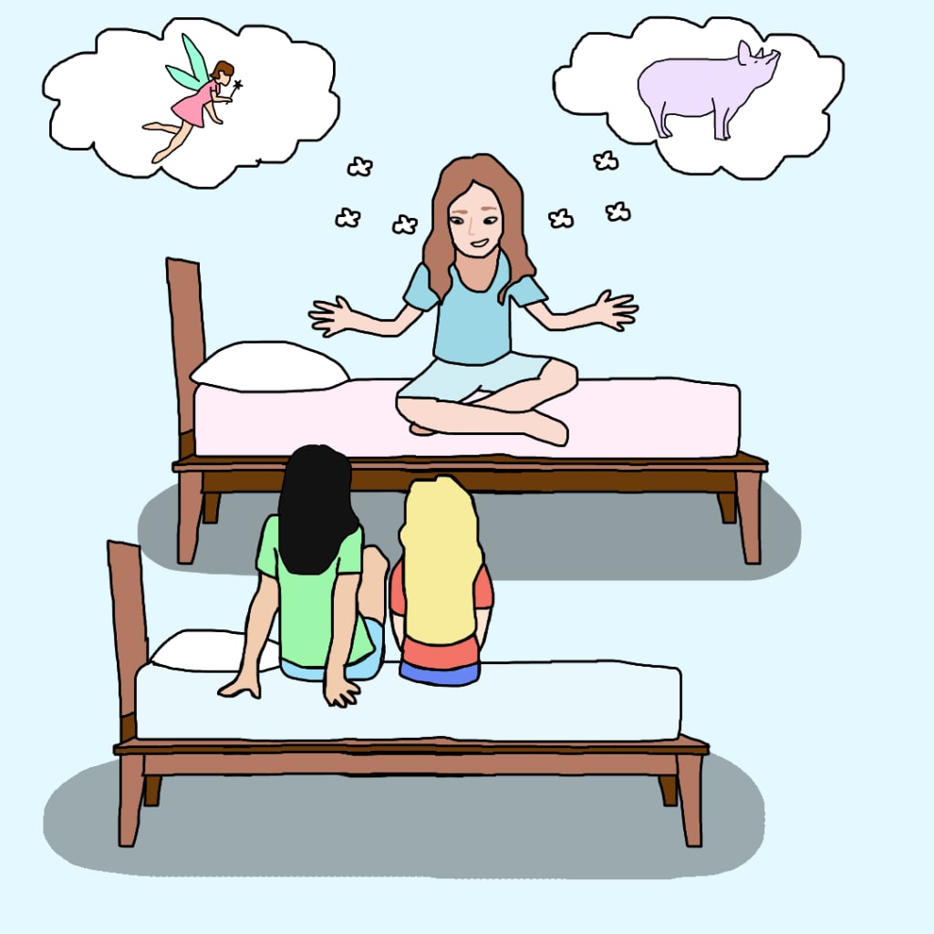 As the youngest of five kids growing up on a farm in upstate New York, there wasn’t a lot of room so my sisters and I had to share a bed room. At night, when we were trying to wind down for bed, we would beg my older sister to tell us a story. She created a wonderful fantasy so engaging that it usually had the opposite effect. We would stay awake for hours while she told us a story, each night adding new parts to keep us entertained.