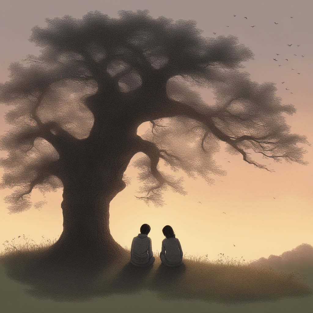 Curious, she unfolded it to reveal a simple sketch—a single tree standing alone on a hill, its branches outstretched against a calm sky.