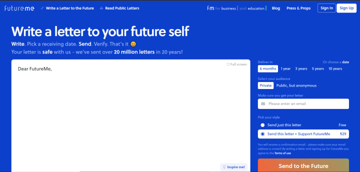 You can also publish your letter in public and you can read public letters other people wrote. It is really inspiring!