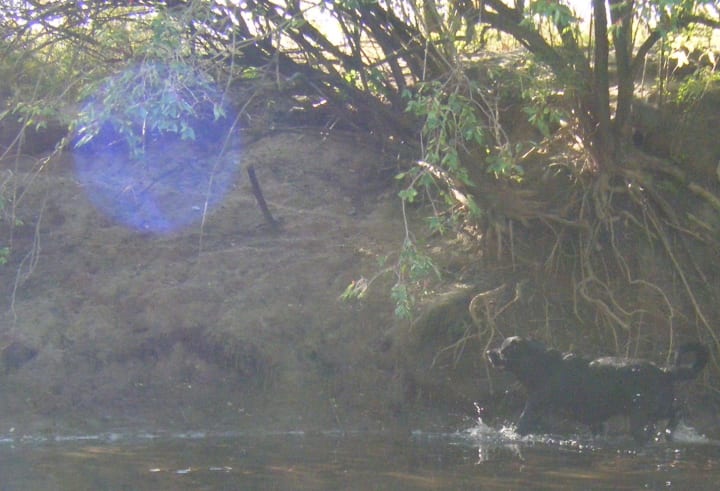 It is quite a challenge in itself to pick and narrate a single experience that my dog and I have made together. The first time we met was a silhouette of a puppy with the sun shining on his back that came trotting into our construction garage, with ears flopping and big paws flopping. Someone had abandoned him...at least that is what I believed before learning about all of the planting that goes on in our lives.. He looked like a shiny coated black Labrador, but also had a curled tail and spotted tongue like a chow.