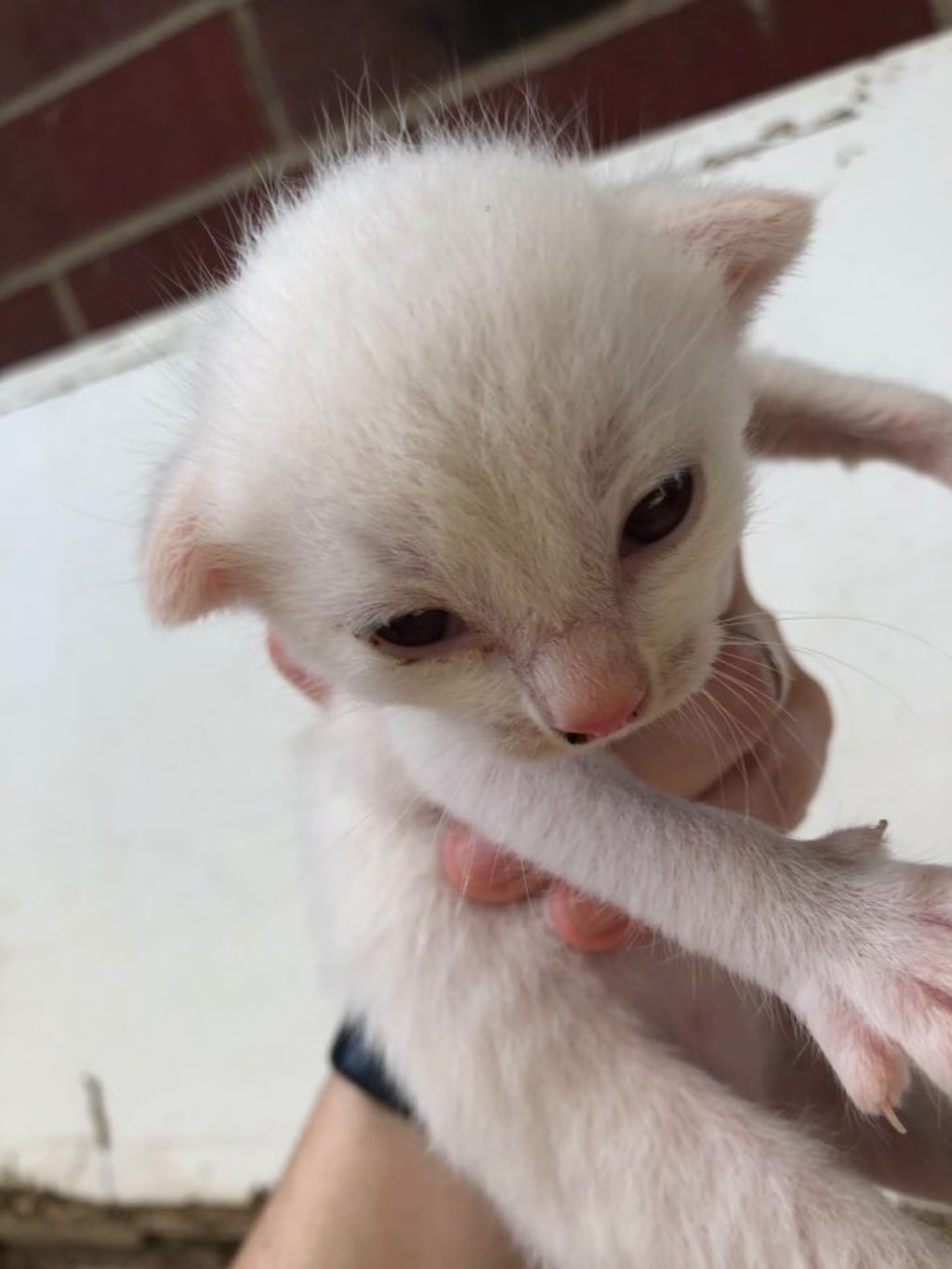 Almost a year ago, my best friend from high school messaged me one day asking if I knew anyone who would want to adopt a kitten or two. She sent me a picture of this teeny tiny little white ball of fur, along with his 3 siblings who were all orange. Quite strange how a momma cat who was all orange and the daddy was all orange, too, could have a litter of 4 kittens and one comes out all white. Who knew? Well, I showed the pictures of the kittens to my mom and she said she wished she could take another one in to join the crowd of her eleven cats. I told my best friend that I wanted the white one. But I didn't know how my then-husband would react since he wasn't really a cat lover. When I showed him the picture of the litter, he immediately said he wanted the white one, too. So, it was settled. I let my best friend know that we wanted the white one. A few other people had wanted him, too, but she said she would give him to me if I was serious about adopting him. I told her I wouldn't change my mind for the world. I've always wanted a white cat that I could name Snowball. Over the previous ten or so years, we had fed some all white cats who we named Snowball, but they were never really ours.