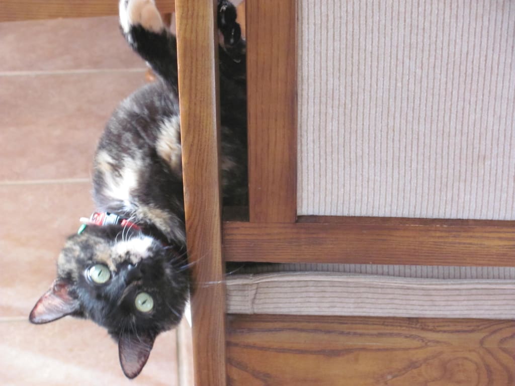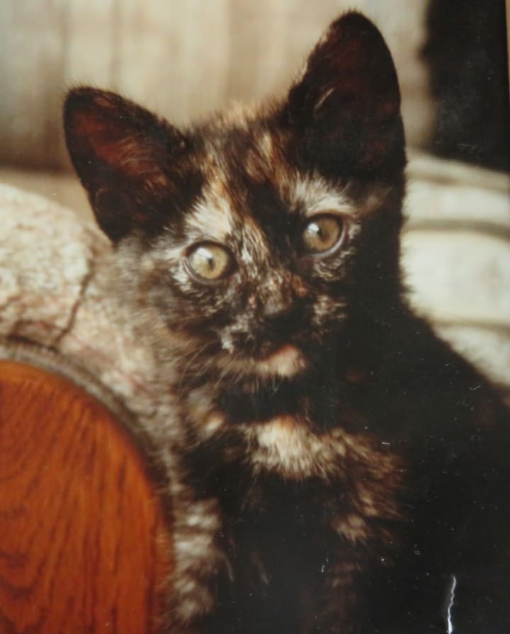 We made our way to the back of the store where the glass-fronted cages were and could hardly believe our eyes when we saw an 8-month-old tortoiseshell kitten in one of them. She was so much like Cloe, the cat I had recently lost that I was instantly drawn to her.
