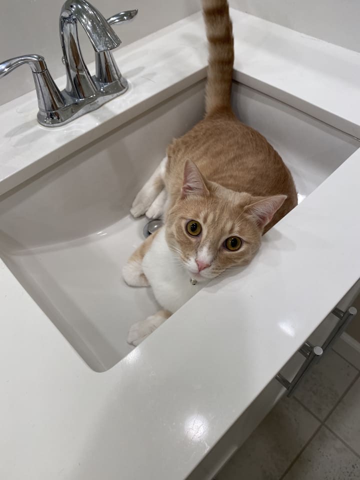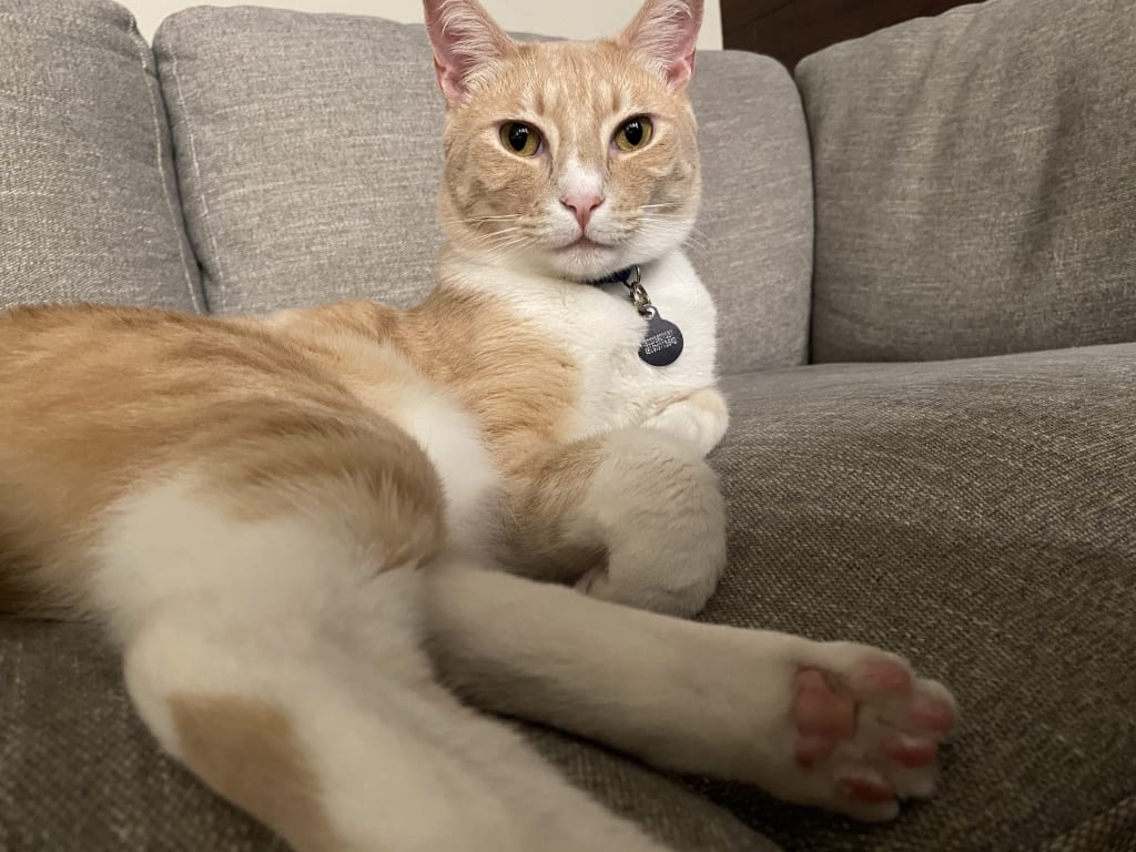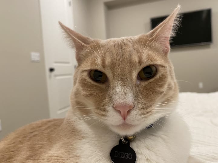 In the background of my camera angle, an orange fluff moves across the screen. That orange bundle of joy is Diego. Diego begins meowing, rather loudly. If anybody has experience with orange cats, you know how incredibly vocal they can be.