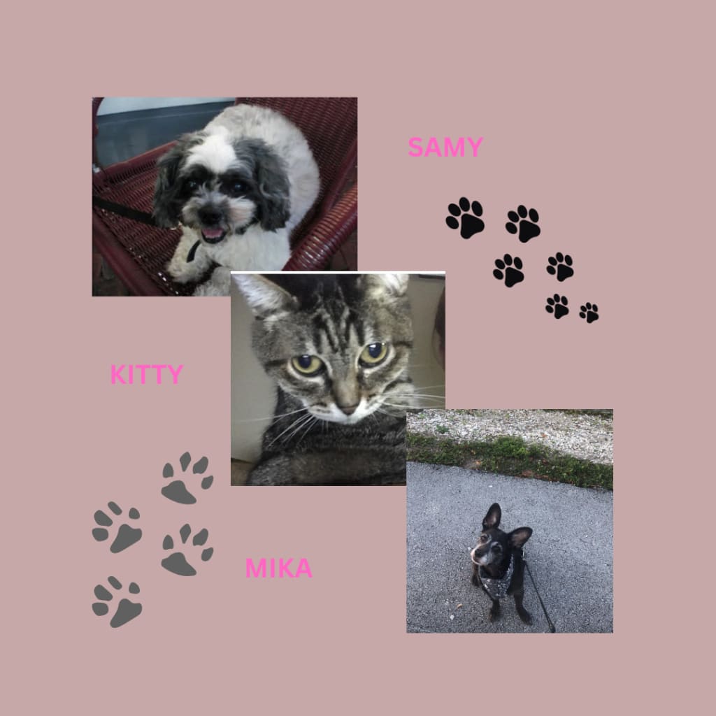 I had adopted a stray cat I named Kitty during the years I had Samy. She was the sweetest cat I'd ever known. I never saw her hiss she was a sweet and gentle girl. She missed her sister Samy so on my daughter's 10th birthday she adopted a 15 lb funny looking black terrier mix we named Mika.