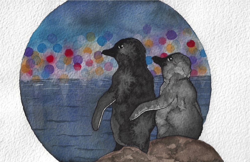 The following evening felt much quieter, despite there being far more penguins moseying about. It’s probably too cold for those bare-skinned fools, thought Percy smugly, his dense plumage providing a perfect brace against the wind. He was perched on his usual rock, once again pondering the myriad of lights across the bay. Penelope had always found them more alluring (Percy suspected they were just silly human things), but now, he couldn’t imagine doing anything else with his evenings. He was reflecting on why he’d been so protective of those weird, barely useful leaves. Perhaps he’d grown too used to only looking out for himself. Perhaps the leaves had just been something colourful and new, in his grey, unchanging world. Either way, they were not the most meaningful discovery he’d made last night.