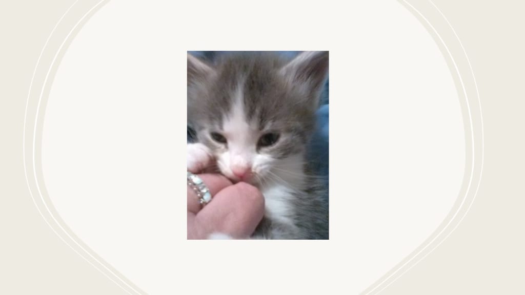 Now it was Fall of the third year, and I was walking to the post office, when I noticed two little bundles of fur just off the edge of the sidewalk in the grass. I walked over to them and saw that they were the cutest tiny kittens that I'd ever seen, and I scooped them up into my hands and returned home. I found a cardboard box to put them in, then wondered what on earth I was going to do with them. What did I know of kittens? Not much, but I loved them already. I reached into the box, stroked their little heads, and promised that I would take care of them. I got a small bowl of milk for them to drink and spent the rest of the day with them until my significant other got home from work. I didn't know what he would think or say, and was a little nervous, but when he walked in the door, and I showed him the box, he loved them, too.