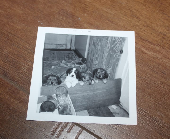 The year after we had adopted Sammy, when I was nearly four, Rover came into my life. He was one of four pups, from yet another unplanned litter. My mother and my brothers and I each chose a favorite. Pup Star and Astro, as my brothers named them, had beautiful markings and agile long legs, perfect for jumping up to see over the edge of their box bed. Rover’s sister, Laika, had scrumptiously soft, curly, brown fur. She was my mom’s pick of the litter. Rover was the runt. He had short legs. Unusually short legs. He had an exceptionally long and unbecomingly fat body that rested on those unusually short legs. This all made for a belly that hung dangerously close to the ground and an inability to jump high enough to see much of anything from inside his box prison.