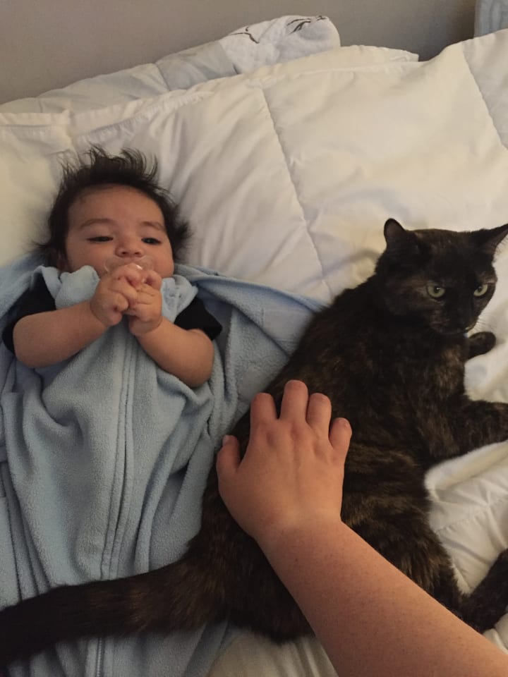 Years passed with our sweet cats. Eventually we started to do foster care, and all the kiddos loved the cats. Tiana ended up being as playful as a puppy. Batting around toys on the floor, snuggling up next to the babies.