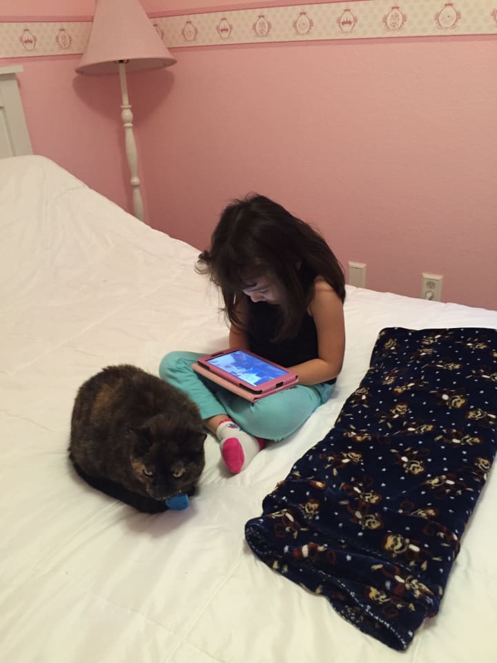 We went to the local Adopt don’t shop event and brought home a spunky kitty and named her Princess Tiana. It took Tiger some time to warm up to her pal, but before you knew it, we had two cats running and frolicking around our home.