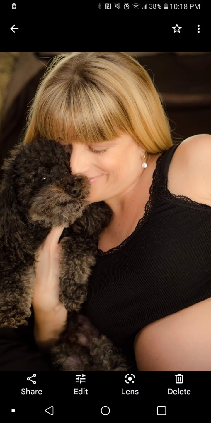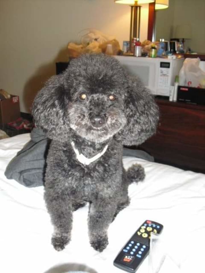 Bailey was a Toy Poodle, black with peanut butter paws and peanut butter-colored hair above his eyes so it looked like he had eyebrows! And a little beard around his snout. By the time he was three, the tan-colored parts had turned silver, but he remained just as handsome. It was almost like how certain men of a certain age become known as a "Silver Fox." But I digress.