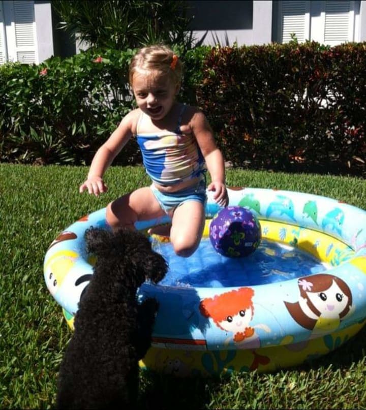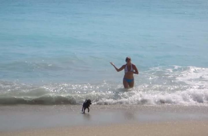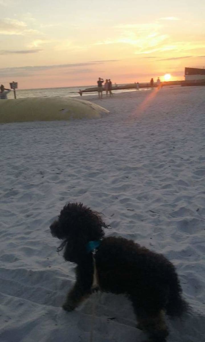 Bailey was the fastest dog on the beach. Whether he was chasing the football being thrown twenty yards between two beachgoers or jumping three feet off the ground to catch a frisbee, he was fast! He had no fear. He would chase a tennis ball into the ocean waves as if he were a golden retriever. People couldn't believe he was a poodle. (Most people don't know that poodles are water dogs).