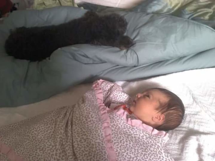 We eventually made our way back to where I was raised - St. Pete Beach, Florida. I decided to add to my sweet family of two (me and Bailey) and I had my beautiful little girl - my Sweet Savannah Grace. Bailey adored her from the moment he saw her. He never left her side. (I'm looking for the picture of him laying on my eight-month-of-pregnancy tummy, where I know he felt her heartbeat.) They were inseparable.