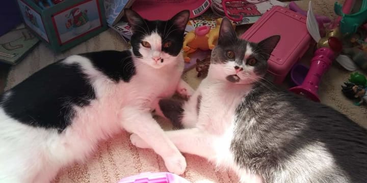 I had grown to love those two kittens. Marilyn Monroe and Audrey Hepburn. Marilyn was black and white with a perfectly round black dot on her left cheek, hence her name. Audrey was her beautiful grey and white sister. Those two were quite a pair. Marilyn was the more playful of the two, and Audrey was just like her namesake, classy and elegant. They complimented each other in that way.