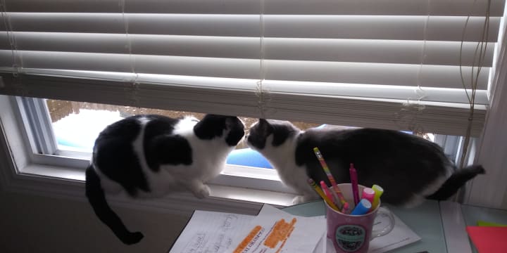 And keeping them out of the office was a game for them, too. They were constantly sneaking in. Sometimes I had to just give in and let them stay. Usually they just wanted to sit on the windowsill. Other times, they liked the cool glass of my desk on their bellies. But they were determined to stay in that office with me.