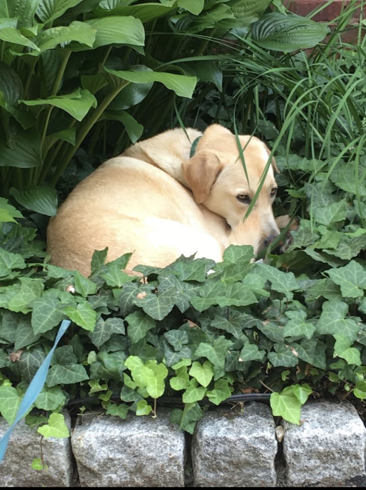 He darted away, further down the path and close to a patch of leaves. He still loves the smell of fall leaves. Maybe it was the acidity of them… my sister followed him with the collar, and slipped it over his head, with ease.