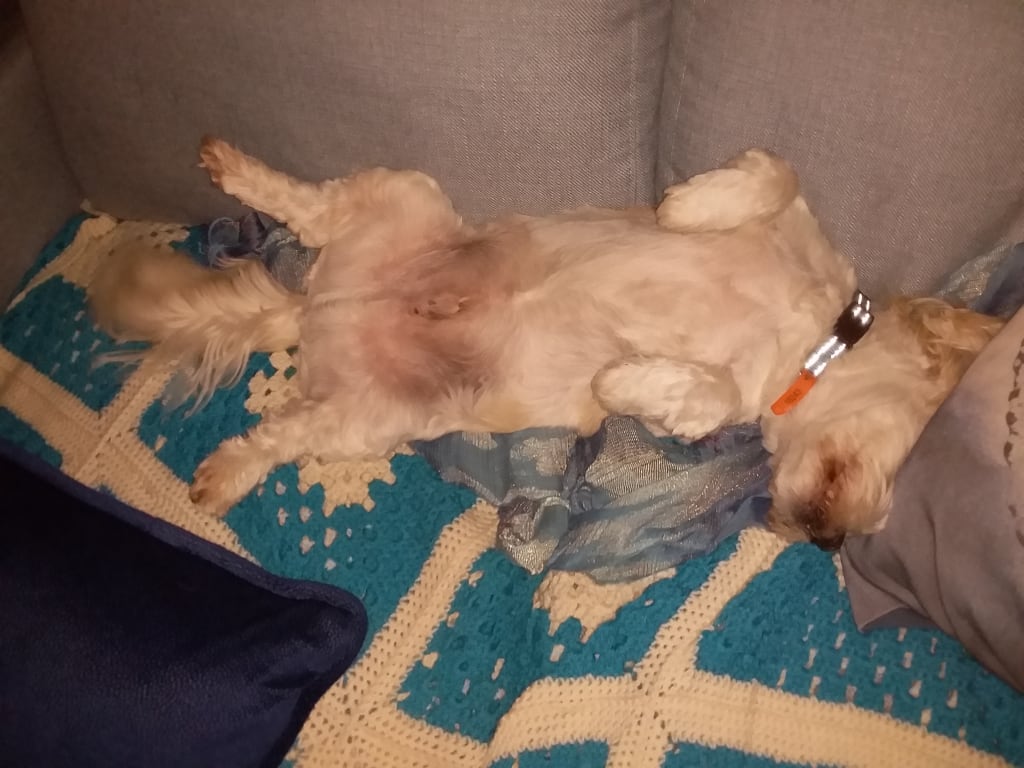 My pet Charlie was a rescue dog. An animal loving friend -Debby, said her daughter had found him in a field wrapped in barbed wire. He must have bolted from somewhere but Deb and her daughter couldn't find where. They put an add in the paper and also let the pound know that they would keep him if no-one claimed him . And after three weeks no-one did so Deb kept him. She had another pet similar in size to Charlie and mated her with him. So before Charlie was even mine he was a daddy and happy about it.