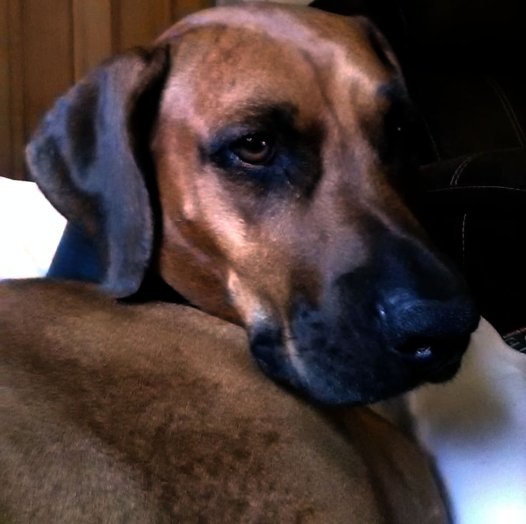 Once free, I turned toward shore. She was still thrashing in the water, with intermittent moments of dog paddling, all the while pursuing me as her point of exit. I slogged through the water with her in hot pursuit, when my foot hit a hidden boulder at the exact same second that her front paws/claws connected with my back. I was immediately thrown over the boulder, landing upon it on my stomach, with my face underwater.