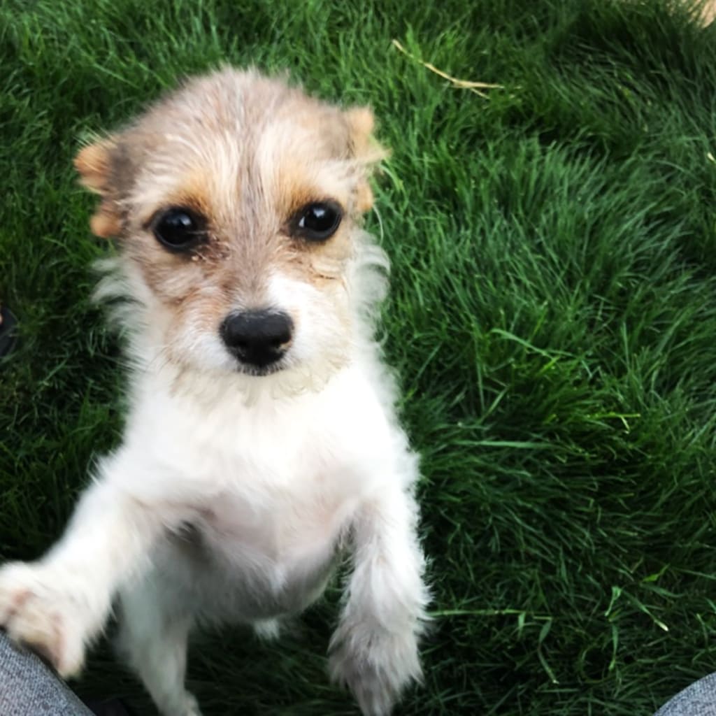 Fast forward to March 17th: I was at my fiancée’s moms house, down the street, making wedding table toppers for the wedding and this little white fluff caught my eye. I said “Was that a dog?” and she said “Yeah, it’s the neighbors dog, it wanders” and we went back to crafting.