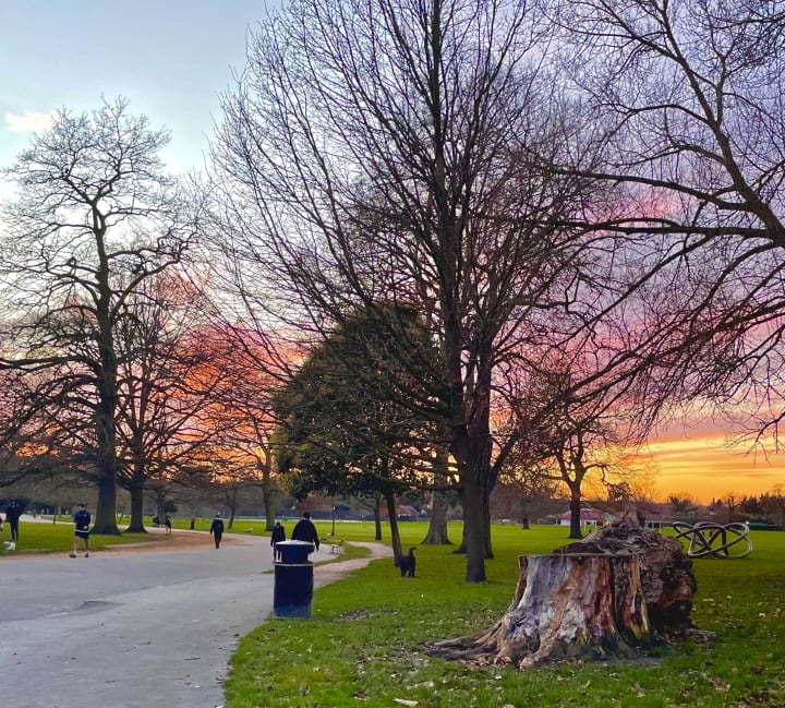 There are still moments where I wish my body was stronger, and my sadness can weigh heavily inside me. There is one particular day like this that stays in my memory. It was cold outside and winter's chill had gotten into my bones and the grey seemed to have settled in my thoughts. Nico pawed gently at my leg, and unable to resist her adoring face I reluctantly took her to the park. We strolled. Nico, ahead of me, sniffing the feet of the benches or edges of the hedgerows. I had my hands stuffed deep into my pockets and chin tucked into the high neck of my coat, eyes down following the concrete path. Nico pottered around my feet and then to my left and stopped. She looked at me, eyes asking me to take notice, then turned away and carried on walking towards a clearing in the trees towards the open field. As I watched her my eyes left the ground and met the horizon. The sky had been swept with a soft chalky pink, and the clouds had taken on a lavender hue. I felt my breath catch in my throat and my eyes water as I watched the bleed of orange from the setting sun. I stood there and took in those colours of sky and felt them filling me up. Every emotion that had turned grey inside me transformed and I remembered how wonderful living is, in all its forms. I thought how if I was still leading the busy and stressful life I had been before I got sick, I’d never have stood still long enough to see the sky as it was then. I’d never had spent so much time with Nico to have such a special bond with her. I realised in that moment that for all that I’d lost, it had also made space for something new. Something more still, more present, different - not necessarily better - but I felt lucky to have it.