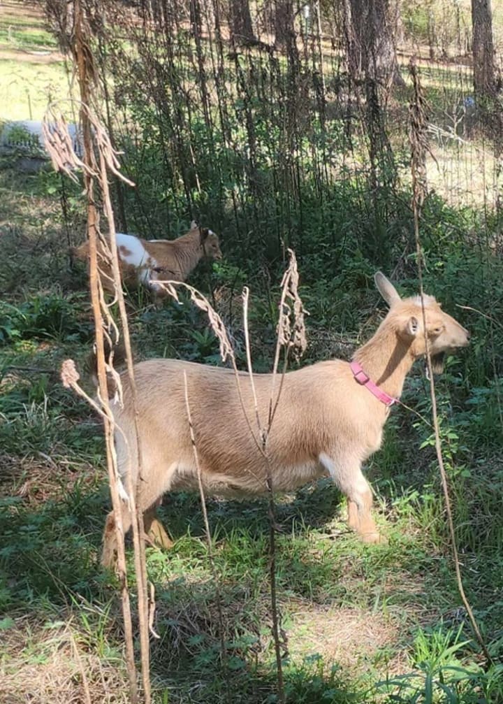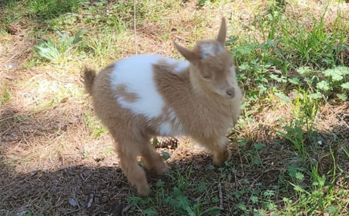Because BuckyBoo is a buckling (a male goat kid), he won't be staying here unless he is far and away superior to Screechy. He's a purebred Nigerian Dwarf kid and both his parents are registered (although he's not)--he might be a nice addition to my herd as a future stud or to someone else's herd. Right now, I'm just enjoying him and his antics. I've got about a year to make a decision on what to do with him, as he will not be sold as a pet. And yes, right now he has a silly "I'm not going to get attached to him and label him with a good name" type of name. If and when he gets a "good" name, it will begin with the appropriate letter for 2024 and will be something that won't embarrass me when people look up his pedigree. (For the record, "Screechy" is only a barn name and isn't on his registration papers.)