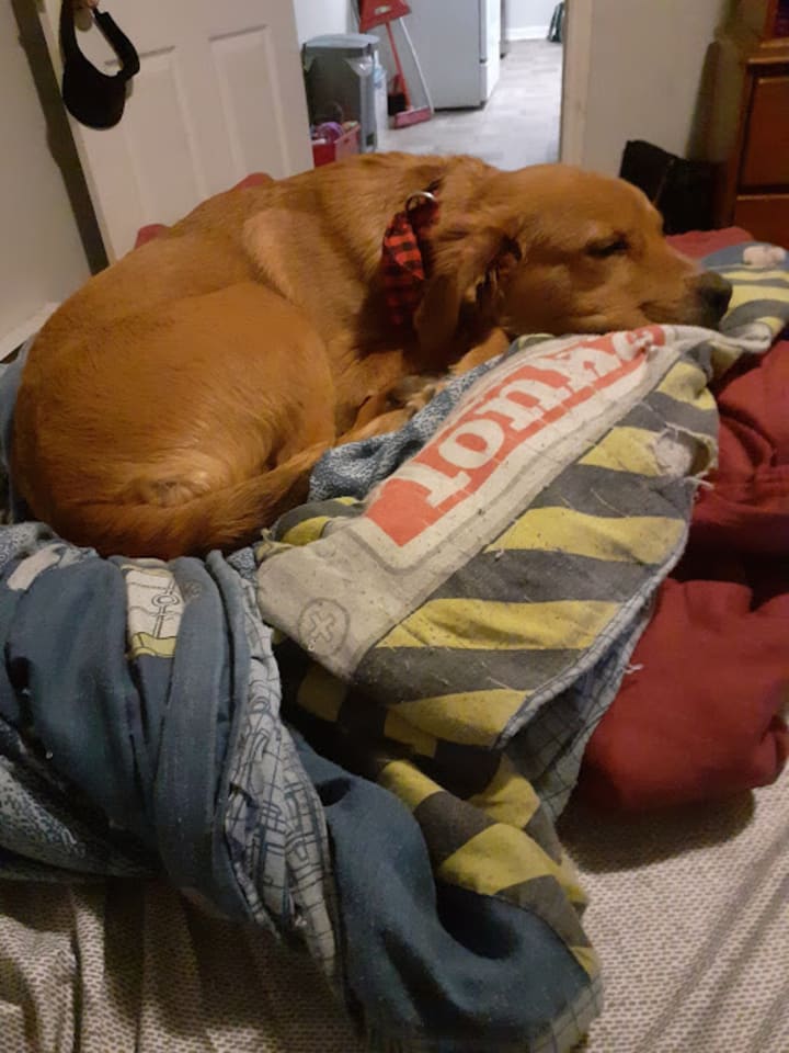 Bailee is an Akbash x Rottweiler x Shephard mix. She had this beautiful coat of fluffy redish-golden fur. This is what originally caught our eye on her. As you can see from this photo, she loved her naps as a pup. Apparently peeing all over the house took a toll on her.