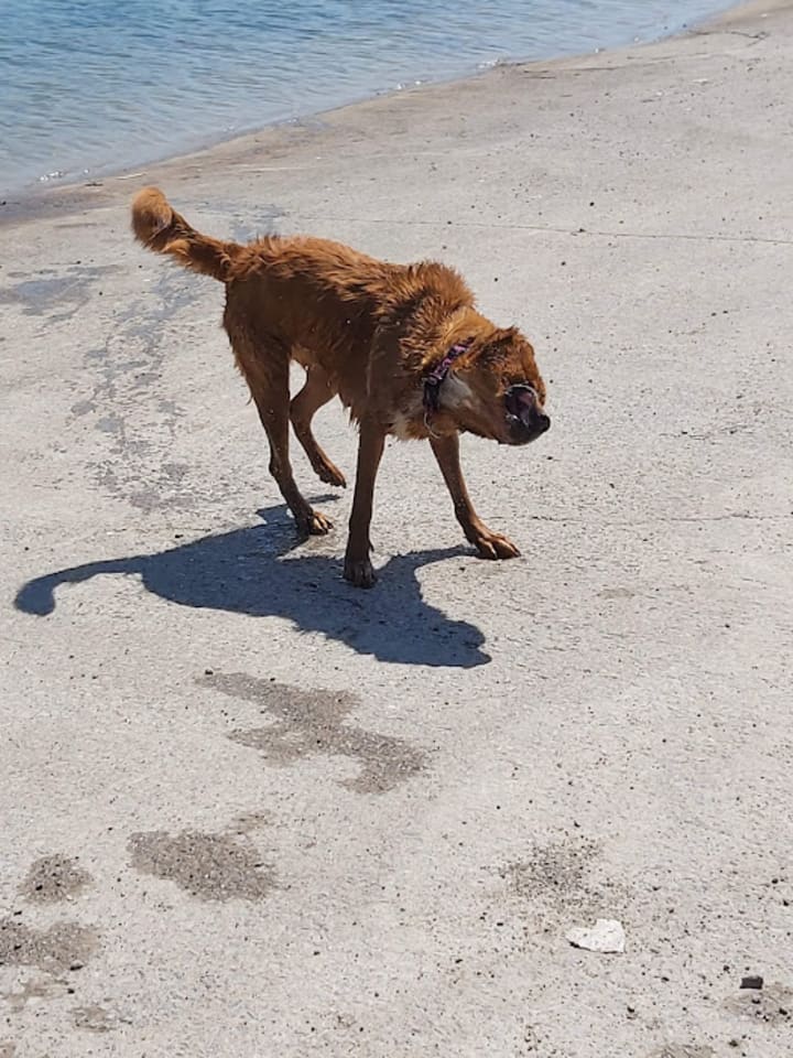 She also loves water, which is ironic because she almost drowned from trying to push herself as far as possible to get a stick.