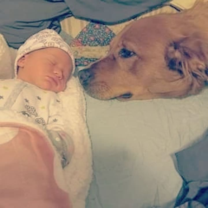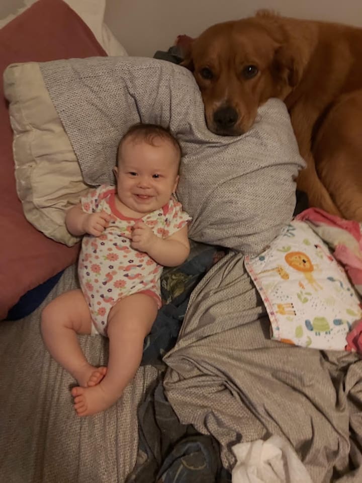 Turns out it was because she was so in love with my daughter she just felt the need to be here protector. This was the first photo I ever got of them together and as much as you can see the unease of being around something so small and fragile in Bailee's eyes, you can also see the love she has for her.