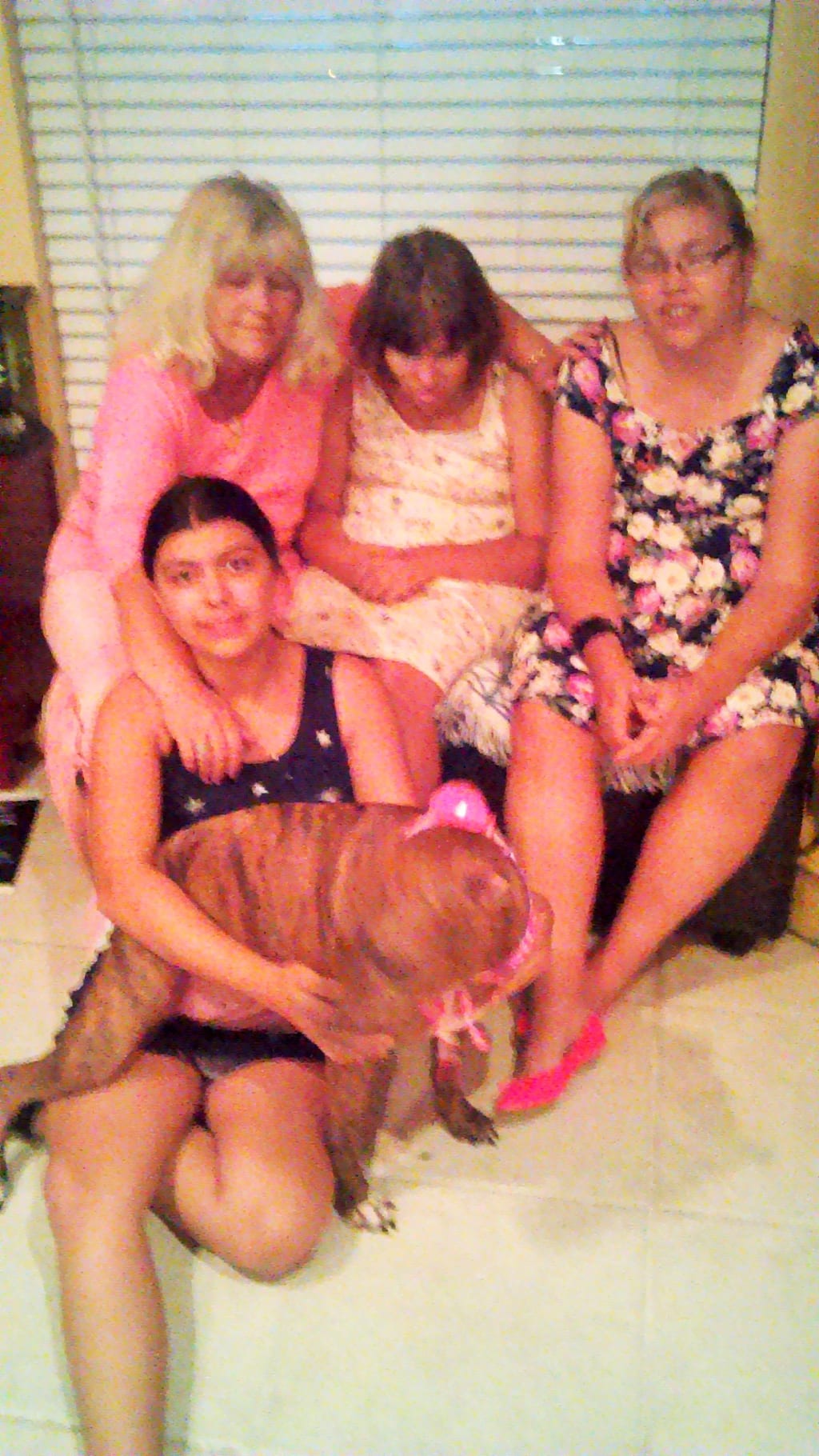 Basha's story is a love story that continues today. We found out after adopting her that she is a Catahoula brindle mix. Catahoula breed of dogs are the state dog of Louisiana brought here when Ponce de Leon came here. I would like to share some pictures of Basha. Below are pictures of the family including Luna, Emerald, the girls, my husband, and myself.