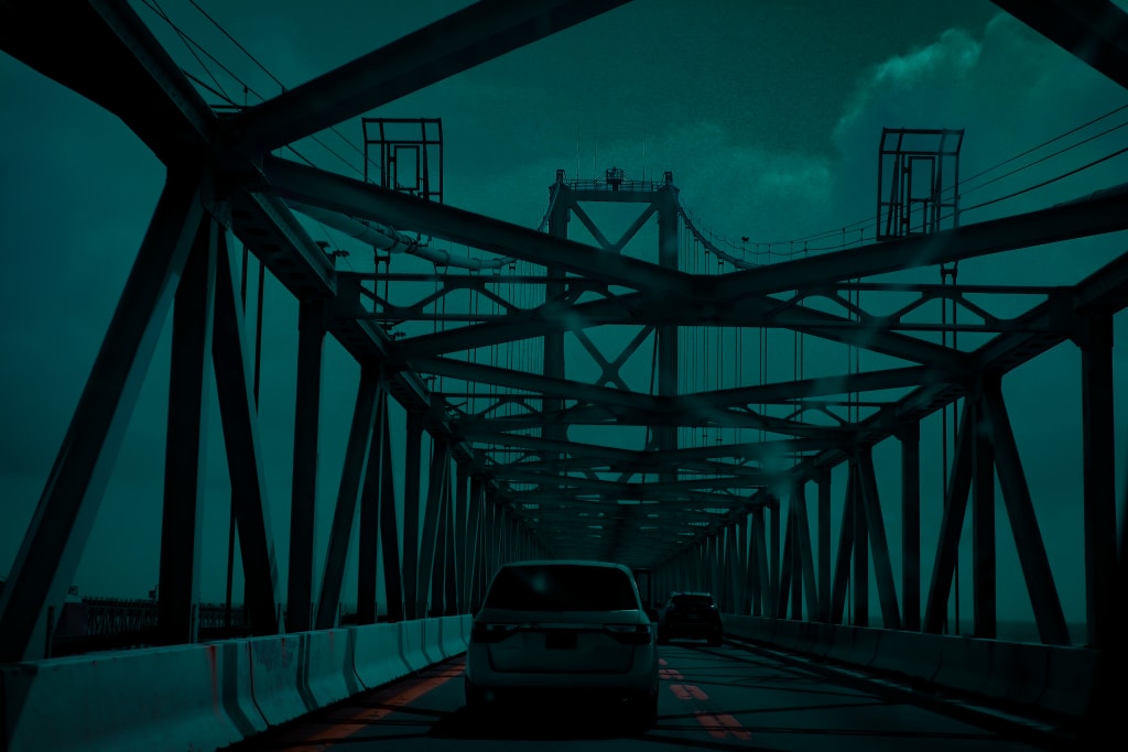 As we approached the bridge, its towering steel beams struck me as both imposing and protective. It was a structure meant to connect, to guide, and at that moment, it felt like a metaphor for the path we were on. I reached for my camera, always close by for moments like this, and framed the shot. The steel veins of the bridge stretched overhead, forming a crisscrossing path that felt endless yet steady. The car moved forward as I clicked the shutter, capturing the raw motion of the moment.