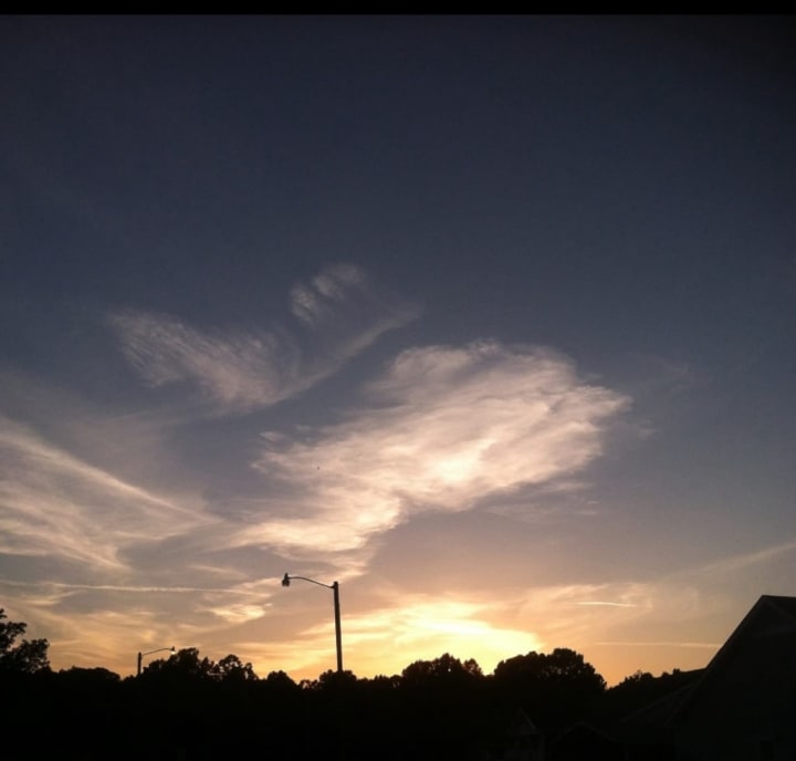It might not look like anything special, but this photo is one of my favorite pictures that I’ve ever taken. Thanks to my mother and her mindset of having a healthy outdoor life. I like to go for walks, especially when it’s a clear sunny day out. I love to put on my favorite music and just go walking for hours. One day when I was out walking one spring evening this sunset stood over. And I’m not afraid to say I thought it was a beautiful thing.