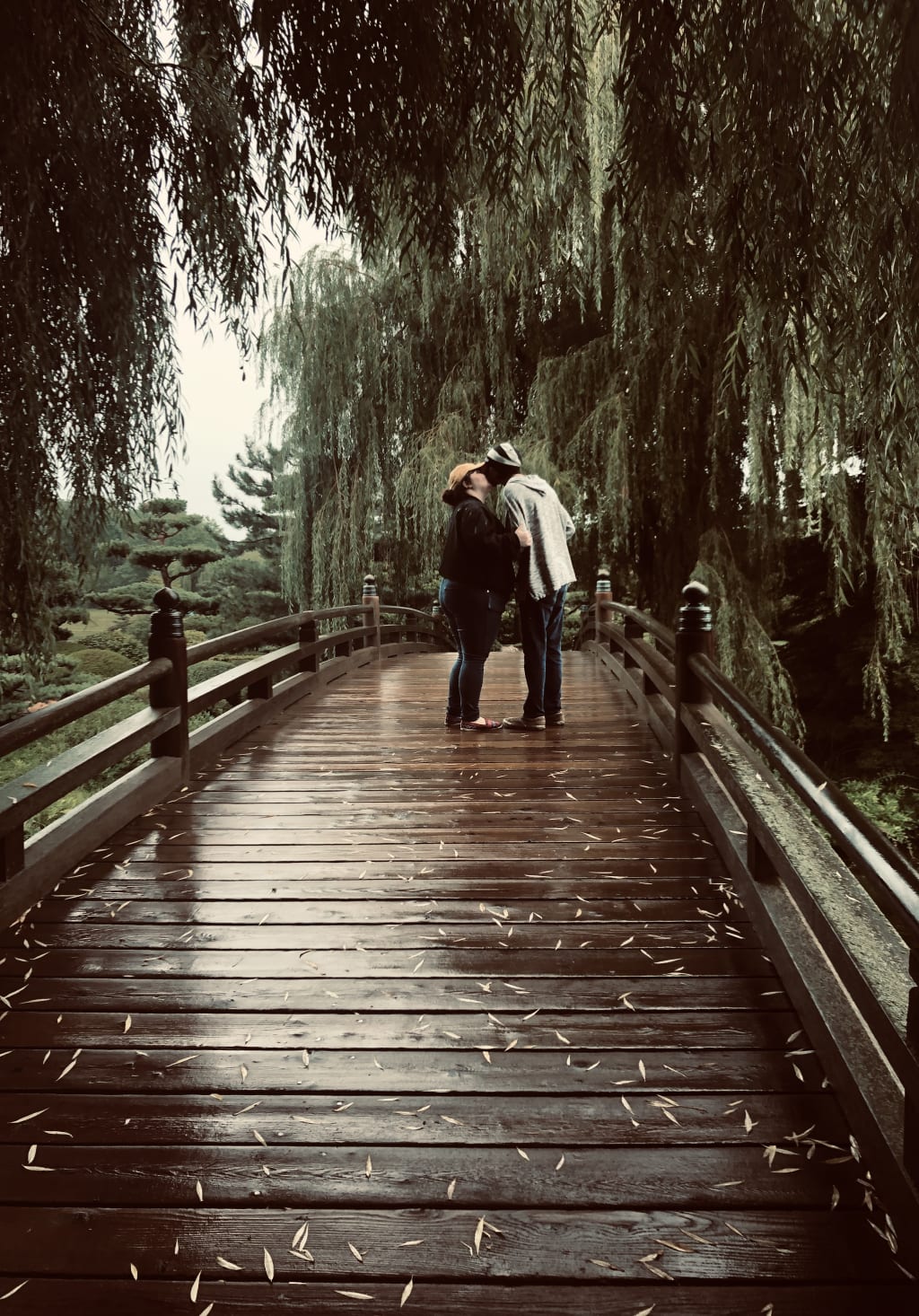 I took this photo on my iPhone using High Def. Resolution and a dramatic cool filter. The photo I took is a special moment I caught of my best friend showing her loving feelings for her husband in their favorite place, the Chicago Botanical Gardens. We were there so I could take photos of their one-year anniversary together. We had arrived on a rain day, which was perfect because there were fewer people there. As we were walking through the Botanical Gardens my friend requested to stop for a moment to admire the small lake in the gardens and to catch our breaths because of how large the botanicals were. I said yes and began to sit down and admire the view while my friend and her husband decided to walk onto the bridge and admire the surrounding areas around the lake. When I saw them on the bridge I decided to pull out my camera and get a couple of quick shots before they changed clothes and begin the actual shoot. They noticed what I was doing but paid no mind and continued looking around and feeling total bliss from their surroundings. I put my camera down after a while and pulled out my phone to send a text message to my boyfriend about how beautiful it was out here when I noticed them begin walking towards me but stopped. I knew I needed to switch over to my phone’s camera quick. As soon as I did I was able to take a photo of my friend kissing her husband without prompt or guide or their knowledge of what had just happened. They had thought I had stopped taking photos of them and that I wouldn’t use my cell phone to take the photo. I also didn’t realize that when I took the photo so quickly that I was using the dramatic cool filter, which added to the beauty of this photo. After that I had them change their clothes and I took photos of the two together in the rose gardens, then in the tropical, and a few other locations. After the shoot I went straight home and began editing all of their photos, except for the one on my phone. That one I left as it was because I couldn’t help but admire the beauty of how much she loved her husband and how much he loved her. That photo made me realize love is a sweet moment that most people take for granted while others try to show it as much as they can. After I finished editing all of the photos I messaged my friend saying that I was ready to show her and her husband their photos and scheduled a quick meet up spot. As we were going through the photos and remembering the moment I was holding back the joy of presenting this photo to her because I at first only provided the ones that were on my camera. As she saw the last photo she began telling me how wonderful the photos were and how much she appreciated them. At that moment I told her I appreciated the compliments but that there was still one last photo I had to show her. She was confused by what I had said and I told her to hang on one moment. I pulled out my cell phone and sent her a text of the photo. The moment she saw the photo, she began to tear up and thanked me even more. She told me this is a photo she always dreamed of, a photo that truly caught her love for her husband. I said thank you and after a few more words we parted ways but none of us will forget the beauty this photo has caught.
