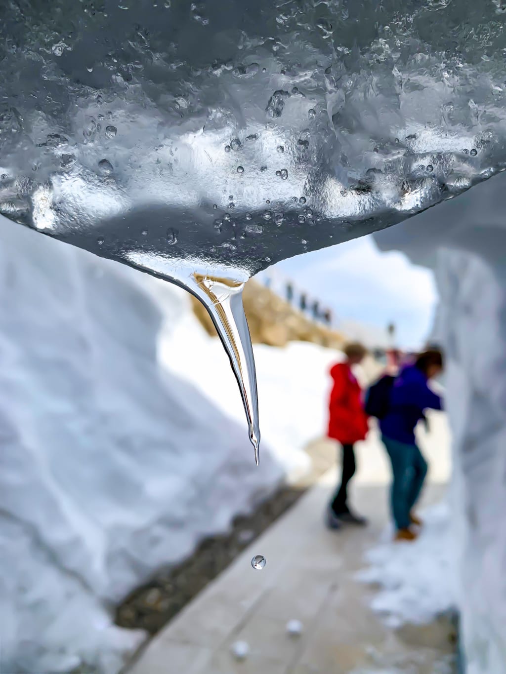 Last spring, I went on a school trip to parts of Germany and Switzerland. I loved every second of it, and when our trip was coming to an end, one of our last stops was at Mount Pilatus (one of the mountains of the Swiss Alps). The weather was perfect; there was just enough snow for playing around and climbing but not too much that you couldn't go anywhere. The temperature was cold enough to keep the snow from melting, but it was still warm enough that we didn't need gloves. There was a huge snowdrift at one side of the platform, so naturally, some of my friends and I used it to climb over the platform and up to another level with a maintenance door and a shoveled out snow cave. While two of my friends were busy making the snow into snowballs for a siege on our comrades below, I spotted this lone icicle, which had held out against the warm weather but, slowly, was also melting. I was enchanted by the solitary beauty and resilience that that singular icicle projected, and I thought it would make a great picture. So I quickly snapped a few until and my friends called me back to help them make more snowballs. We went to the top of the mountain and then went back to the lift to take us down, and I thought nothing more of the picture I had taken.