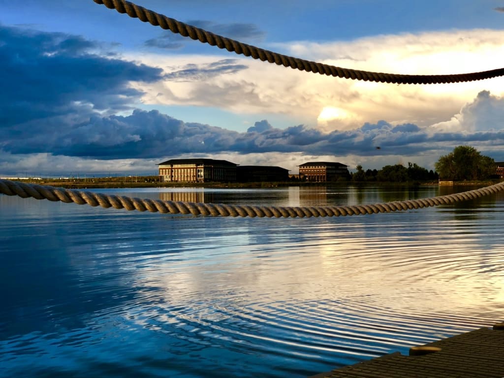 The blues and browns in this image really play off each other contrasting the clouds and the reflection in the water. I like that the ropes the most. They move your eyes through the scene making it look like they hold and separate the couds from the water like sections of an image. I had to jump on the dock to create a ripple that I feel brought the image together. One of my friends really likes taking time with puzzles and as a joke I offered to make this into one so they would have to spend an exceptional amount of time completing it.