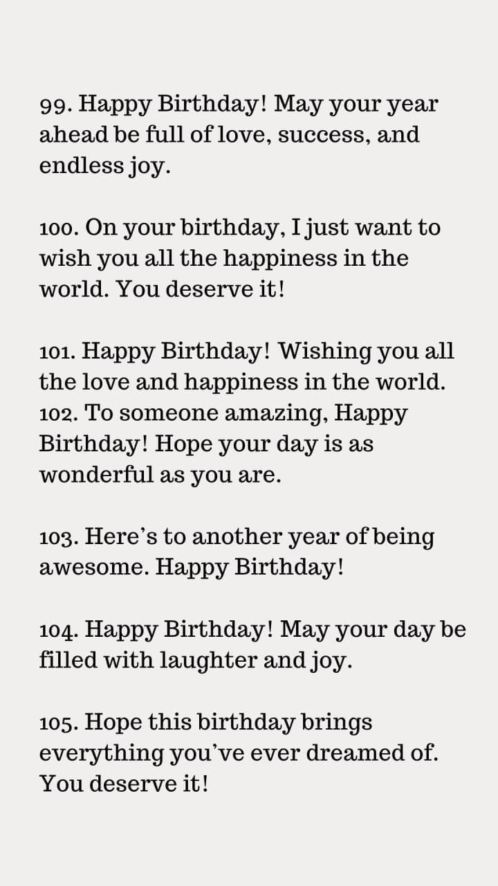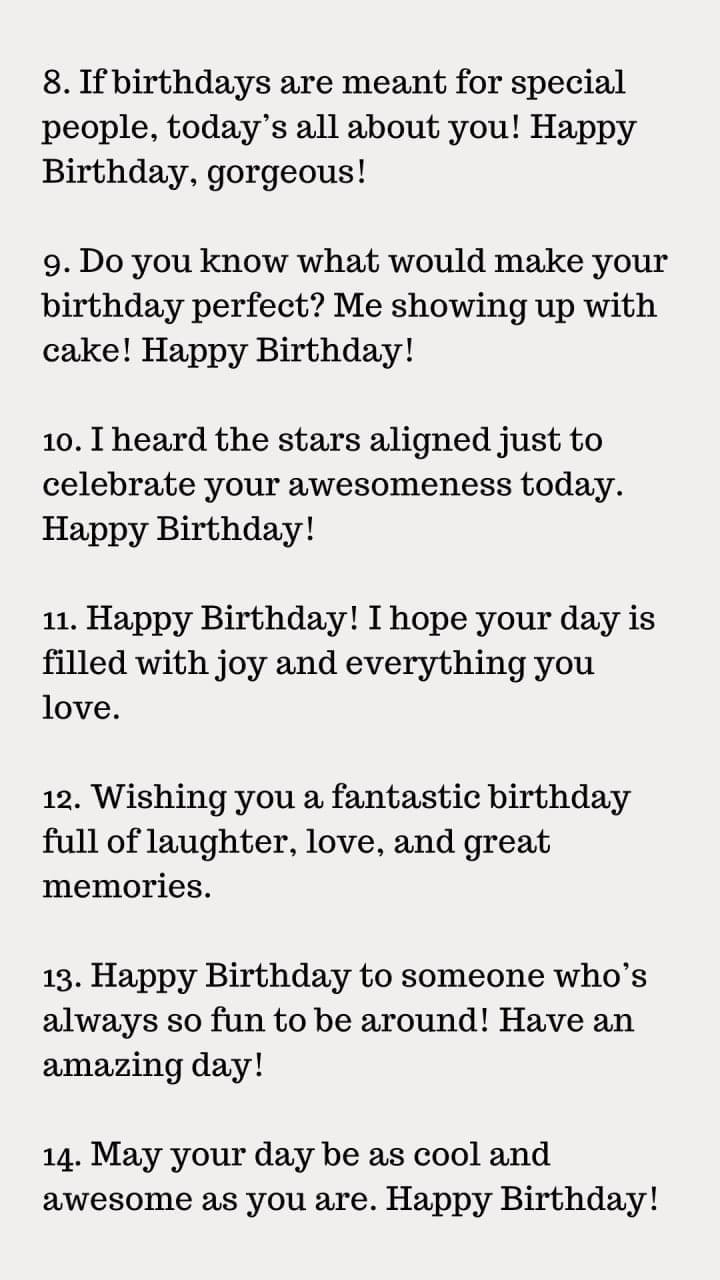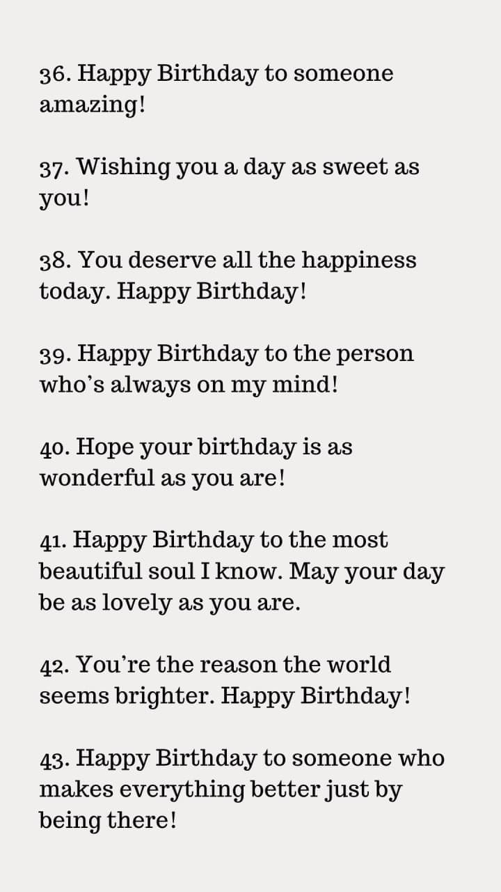 In certain circumstances, less really is more. A simple yet heartfelt birthday message may make a big impact. "Happy Birthday! ", for instance, "I hope your day is as wonderful as you are."
