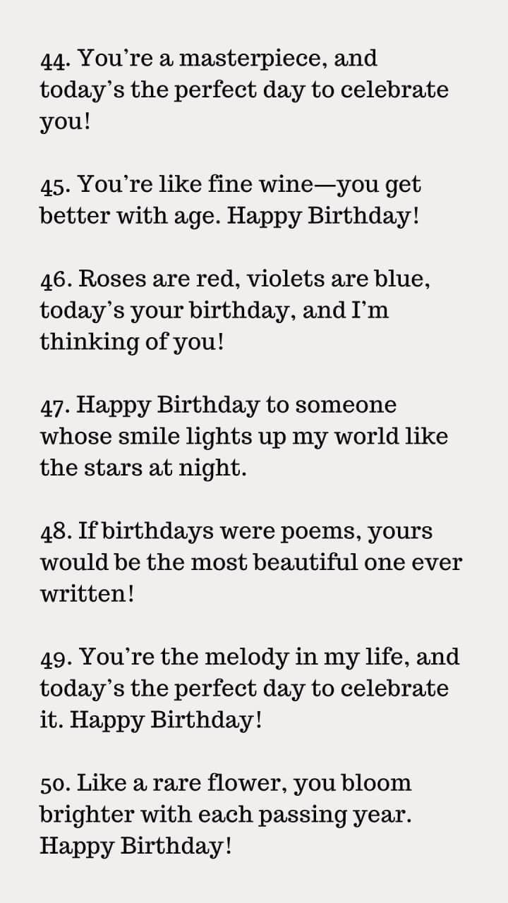 The way you express your birthday wish is just as important as the words themselves. Particularly appealing will be a handwritten letter, a phone call, or even a humorous card.