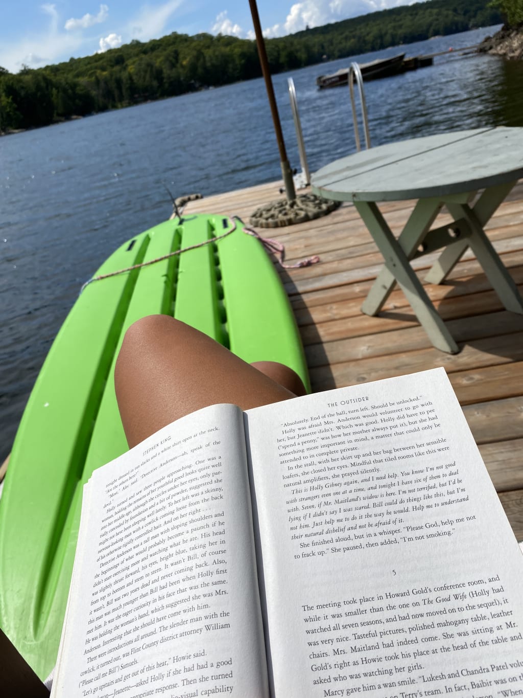 I grab my book and slide the chair onto the dock.