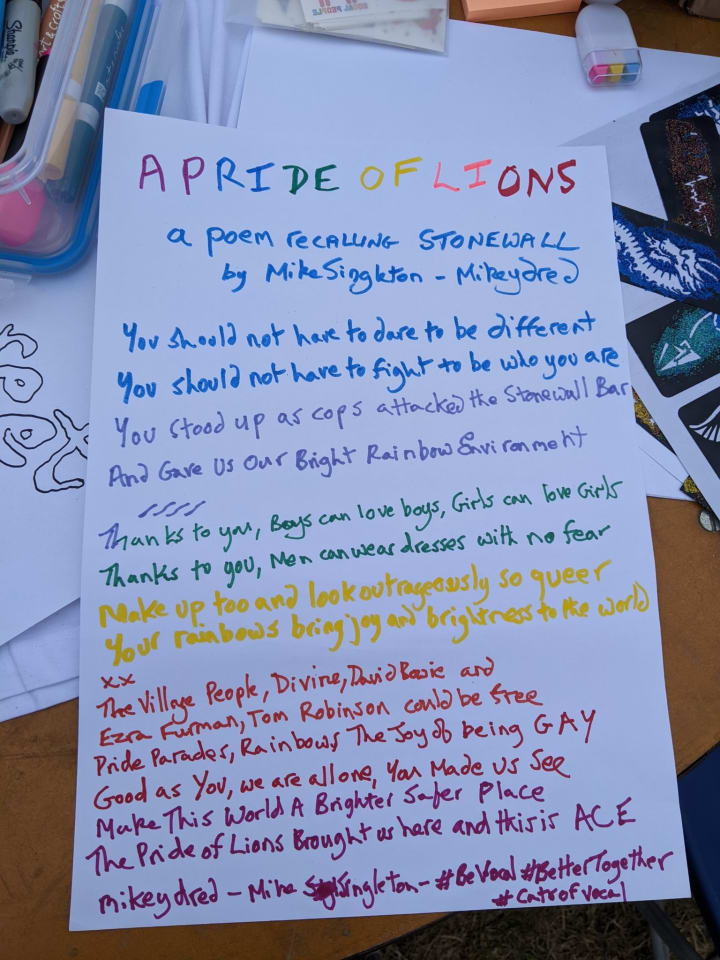I wrote a copy of the poem out for @StreetwiseNorth at Northern Pride 2022 which you can see below along with the video that I took