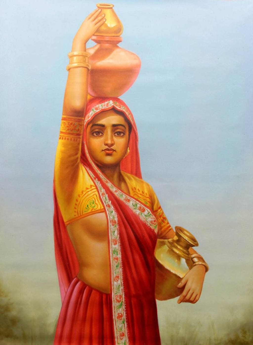 carrying a milk on her head in earthed pot