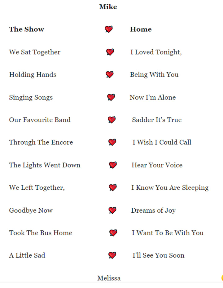 Four Poems on How We Felt At The Show And Afterwards