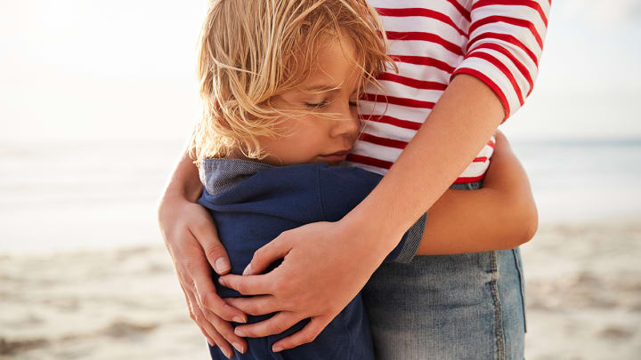 My brave boy, with a smile on his face