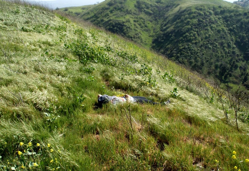 Lying down on the wild oat meadow,