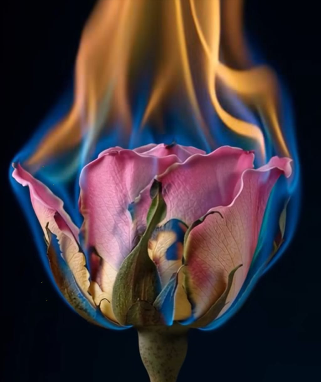 Hot flames ignite from passion it burned the rose and uk